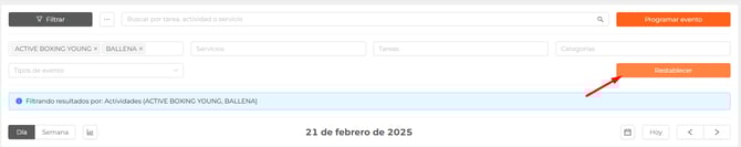 Podemos filtrar el listado de eventos del calendario de tu negocios según: