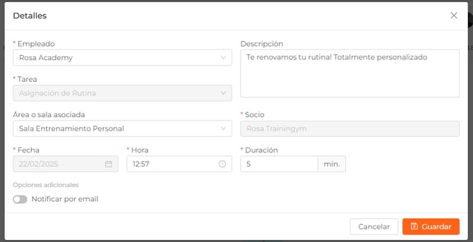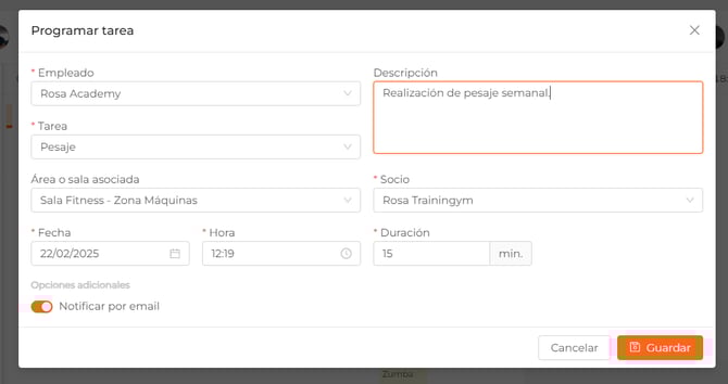 Una vez relleno todos los campos, no olvides guardar 💾 para agendar y que aparezca la tarea en el calendario.