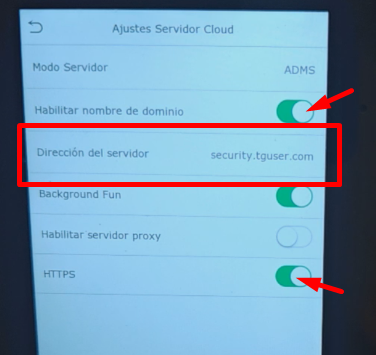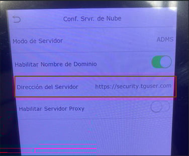 - Si el dispositivo NO tiene la opción de HTTP, la dirección del servidor debe ser https://security.tguser.com