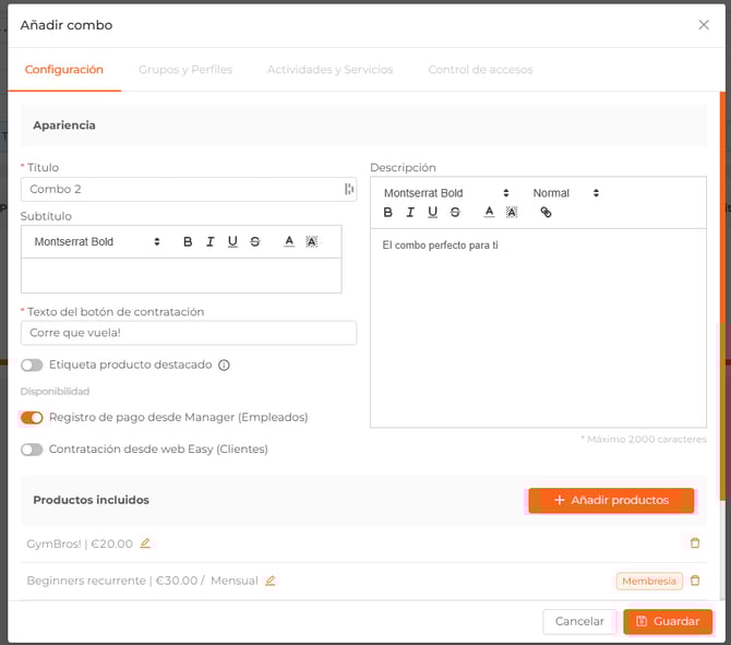 Desde ese momento, os clientes que adquieran dicho producto, sea a través de la app, de Easy o por parte del staff desde Trainingym Manager, se les asignará el o los perfiles seleccionados.