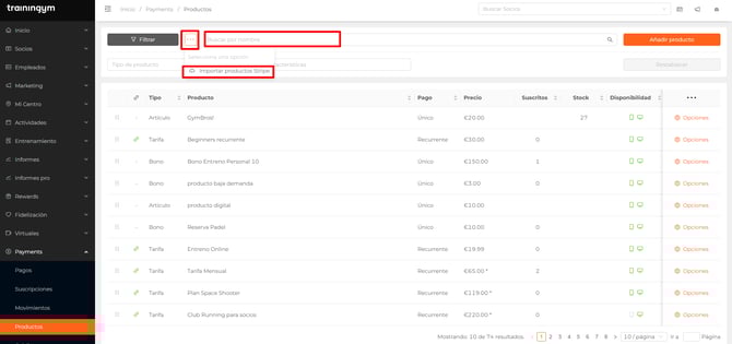 Además, podrás buscar productos por nombre e importar productos desde Stripe desde ...