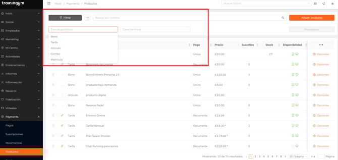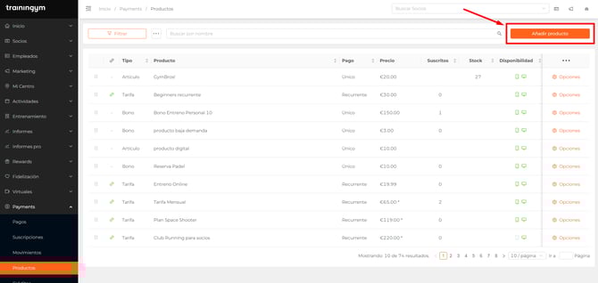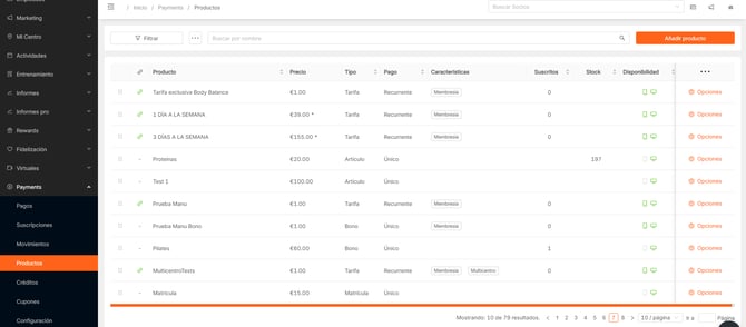 Crea y gestiona tu catálogo de productos y servicios de pago recurrente o puntual con Trainingym Payments
