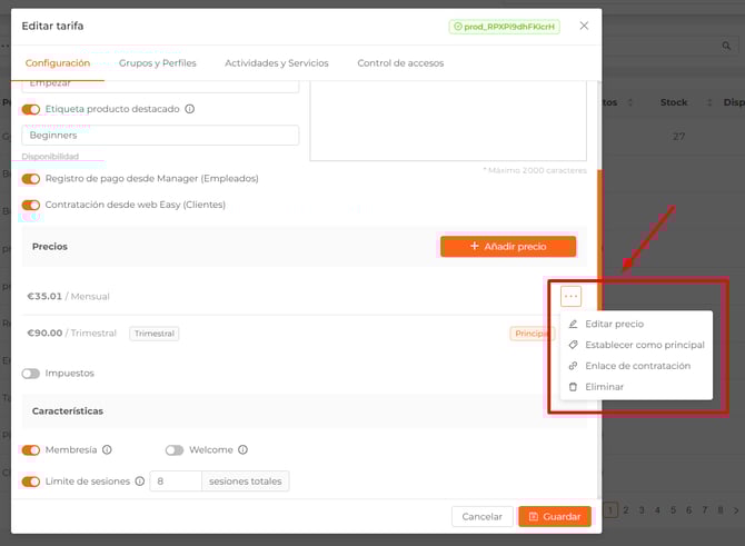 - Editar Precio: dentro de la edición del precio podrás: