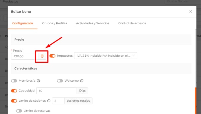 - Límite de sesiones. Número total de sesiones que podrán canjearse. Además, podrás activar las siguientes opciones: