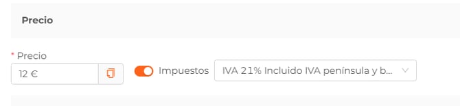 - Impuesto: podrás incluir el impuesto que está incluido en el precio. Selecciónalo en el desplegable.