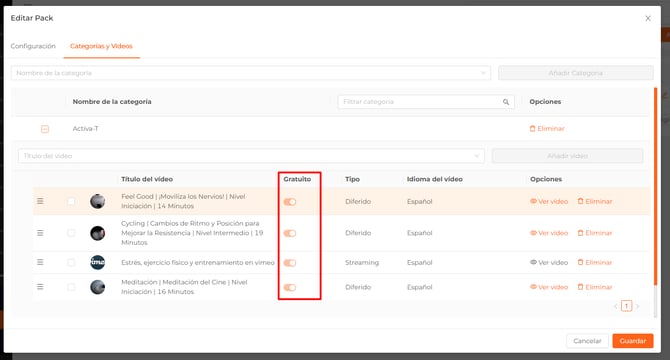 Si desactivas la tarifa "Virtuales Premium", todos tus vídeos pasarán a ser gratuitos y el check quedará disable.