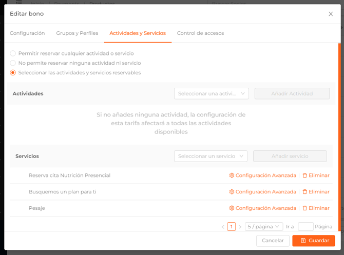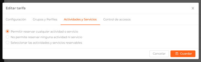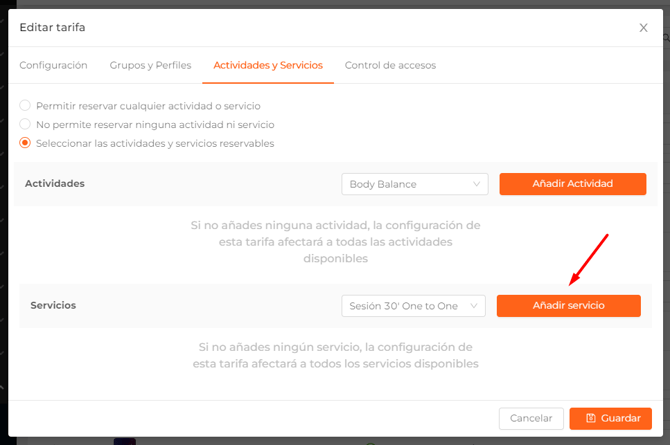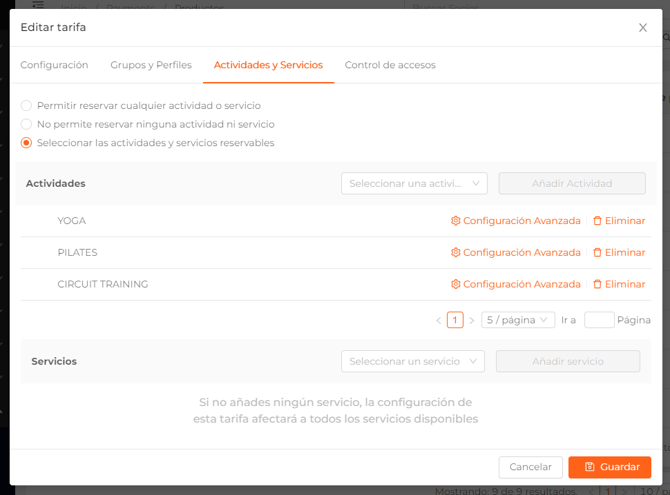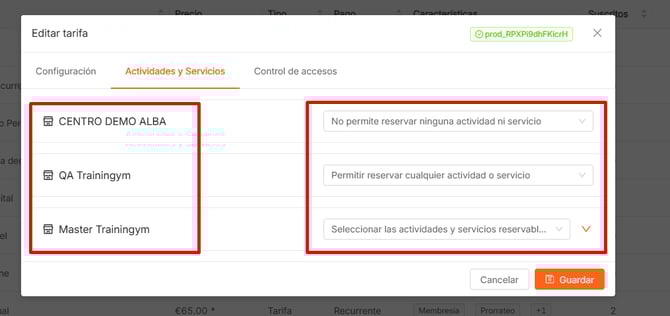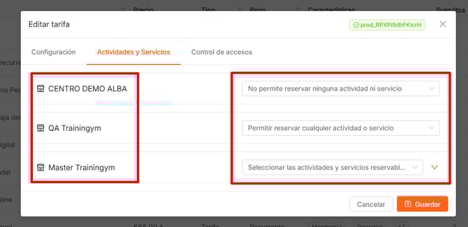 Como hemos dicho anteriormente, en los productos multicentro, podrás seleccionar qué servicios y actividades podrá reservar el socio en cada uno de los centros.