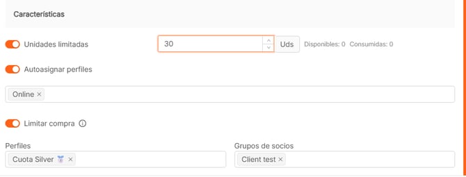 - Unidades limitadas. Limita el número total de unidades de este bono que pueden adquirir los socios. Una vez creado el producto, puedes consultar las unidades consumidas y restantes.