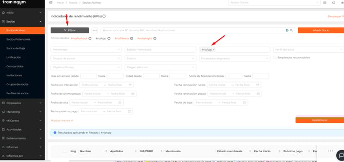 Crea públicos destinatarios utilizando los filtros de los listados de socios y comunícate con ellos de forma rápida