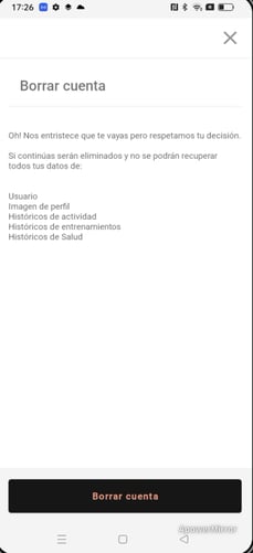 La posibilidad de que un socio elimine su ficha de forma autónoma desde la app depende de cómo se haya creado su ficha y del tipo de app del centro.
