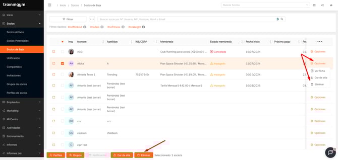 - Accede a Socios > Socios Activos de Trainingym Manager