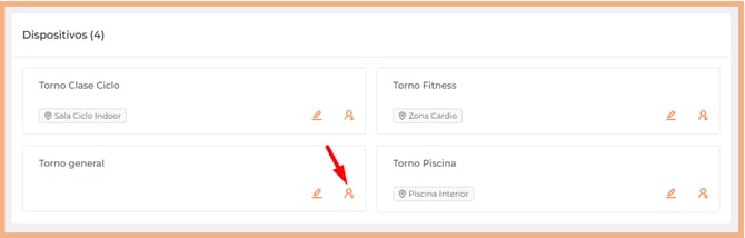 En cada dispositivo, como veíamos antes, tenemos un símbolo de un lápiz, que muestra el modal de configuración, y a la derecha, el icono de una persona 👤, que abre el registro manual de entrada o salida de dicho dispositivo.