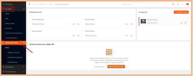 - Pulsa sobre el submenú "Control de Accesos".