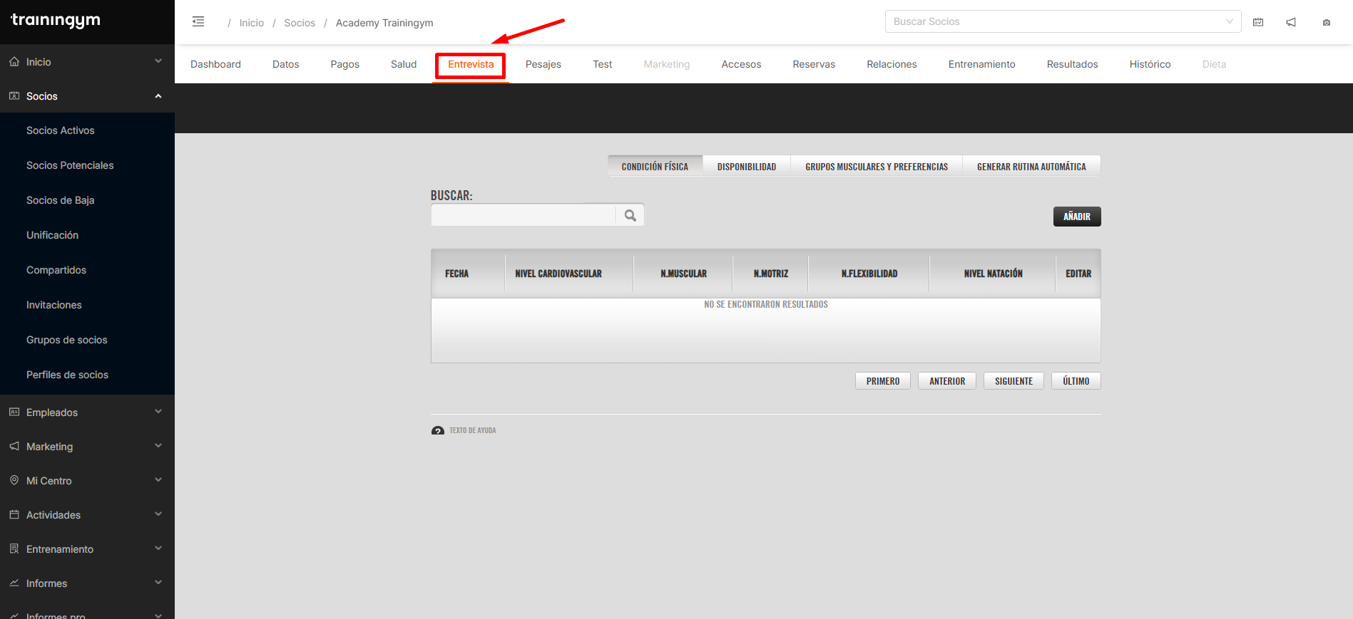 Paso 1. Acceder a la pestaña ENTREVISTA de la ficha del socio