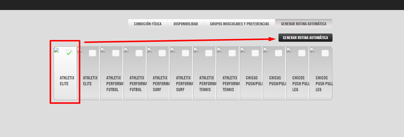 Este creador de entrenamientos permite crear rutinas a través de una serie de pasos en los que se introducen datos de disponibilidad, preferencias y objetivos fitness del socio, los cuales de determinarán las características de dicha rutina.
