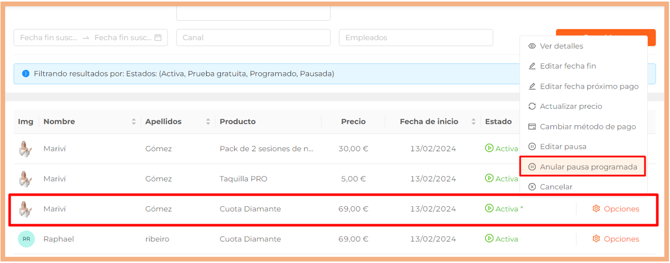 - Pausar una suscripción