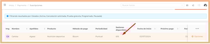 - Suscripciones de pago puntual para las cuales se han consumido todas sus sesiones.