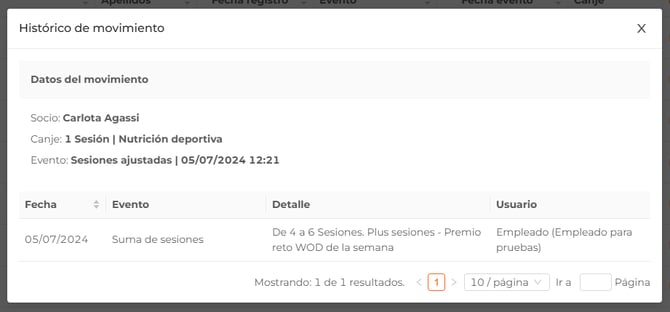 El ajuste de sesiones se verá reflejado en el apartado Movimientos.