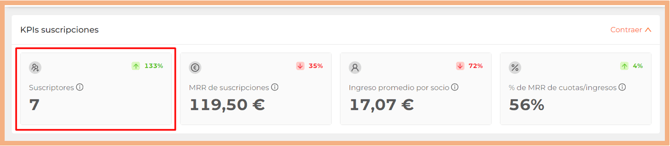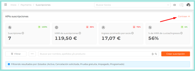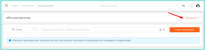 🔍 Puedes desplegar o contraer el apartado KPIs suscripciones para facilitar tu trabajo en el apartado Suscripciones.