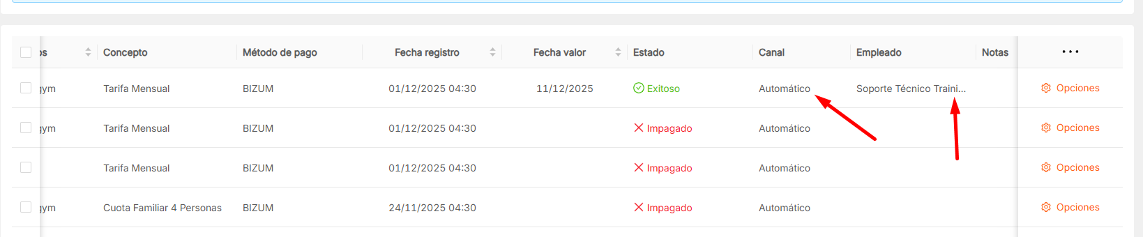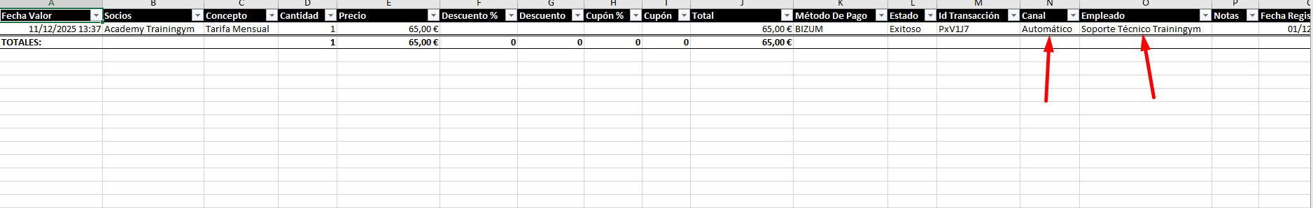 - Empleado: el pago lo ha generado un empleado en Trainingym Manager.
