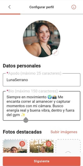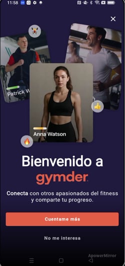 Si clicas sobre Siguiente, accederás a la sección de Gymder dentro de la app y podrás: