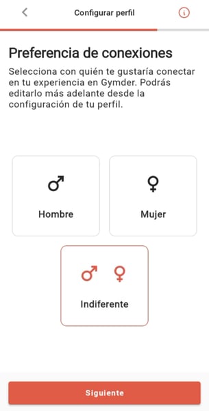 - Una vez seleccionadas las preferencias, es el momento de Elegir preferencias (hombre, mujer o indiferente) para conectar con otros usuarios afines.