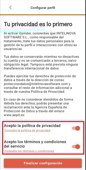 - Para terminar tendrás se mostrará la política de privacidad y tendrás que aceptar la misma y los términos y condiciones del servicio.