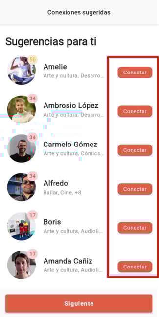Una vez creado el perfil, te aparecerán sugerencias de personas con las que tienes afinidad, de forma que puedas conectar con ellos.