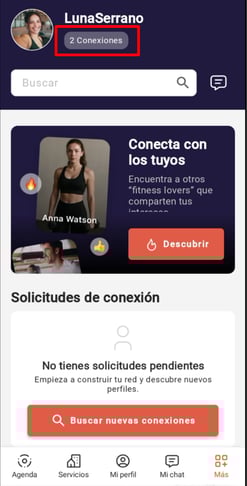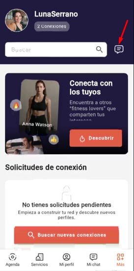 A través de este módulo, los usuarios pueden crear un perfil personal, descubrir a otras personas del gimnasio con intereses similares, conectar y chatear directamente desde la app.