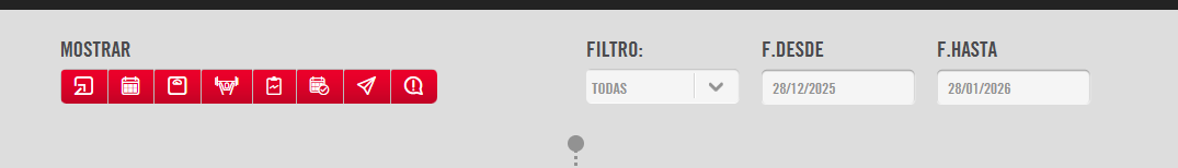 Cada acción o tarea aparecerá en orden cronológico (fecha y hora) según el rango de tiempo establecido en los campos anteriormente mencionados.