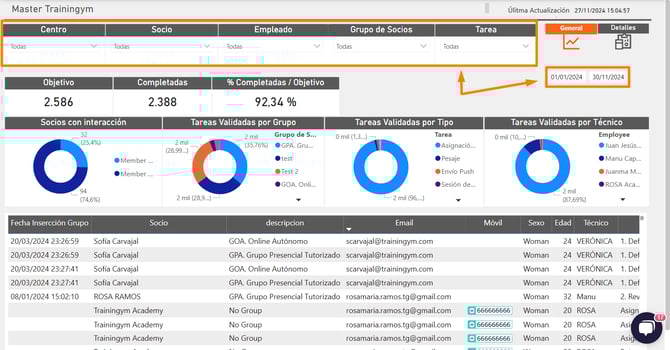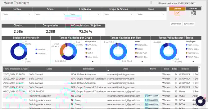 - % Completadas/Objetivo: Este porcentaje representa la relación entre las tareas completadas y el total de tareas asignadas en la agenda del personal.