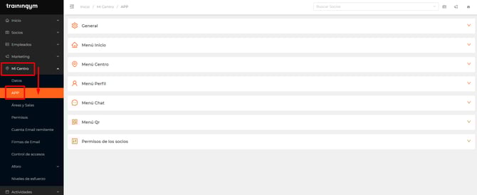 Para visualizar este nuevo menú APP deberemos tener activado el permiso "Personalizar App" que encontraremos dentro del menú Mi centro > Permisos, y a su vez dentro del apartado "Mi Centro".