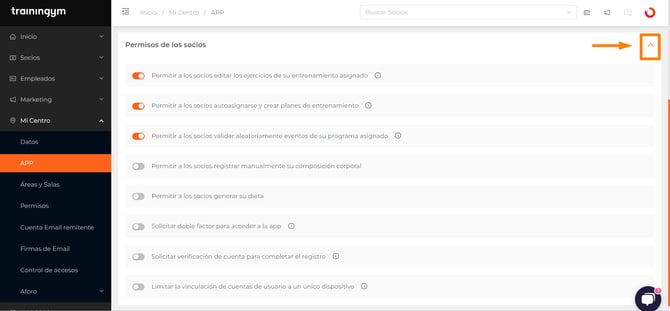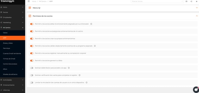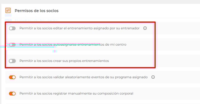 Si está activado los socios podrán crear sus propios planes de entrenamiento.