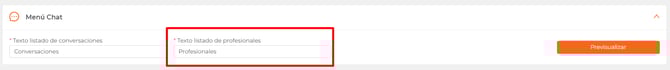 - Edita el texto del listado de profesionales. Máximo 15 caracteres alfanuméricos.