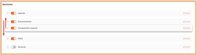En ese apartado podrás configurar el orden en que muestras las rutinas, workouts y programas que tienes configurados como autoasignables.