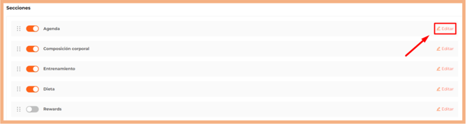 - Modifica el nombre de cada una de las secciones pulsando ✏️ Editar.