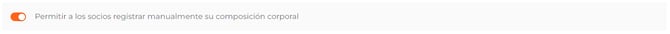 - Para que este botón aparezca deberá haberse activado previamente el permiso "Permitir a los socios registrar manualmente su composición corporal" en el apartado Permisos de los socios.