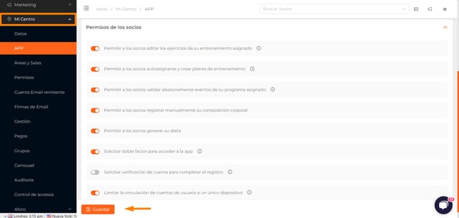 En este apartado puedes limitar algunas funcionalidades de las que disponen tus clientes en la app.