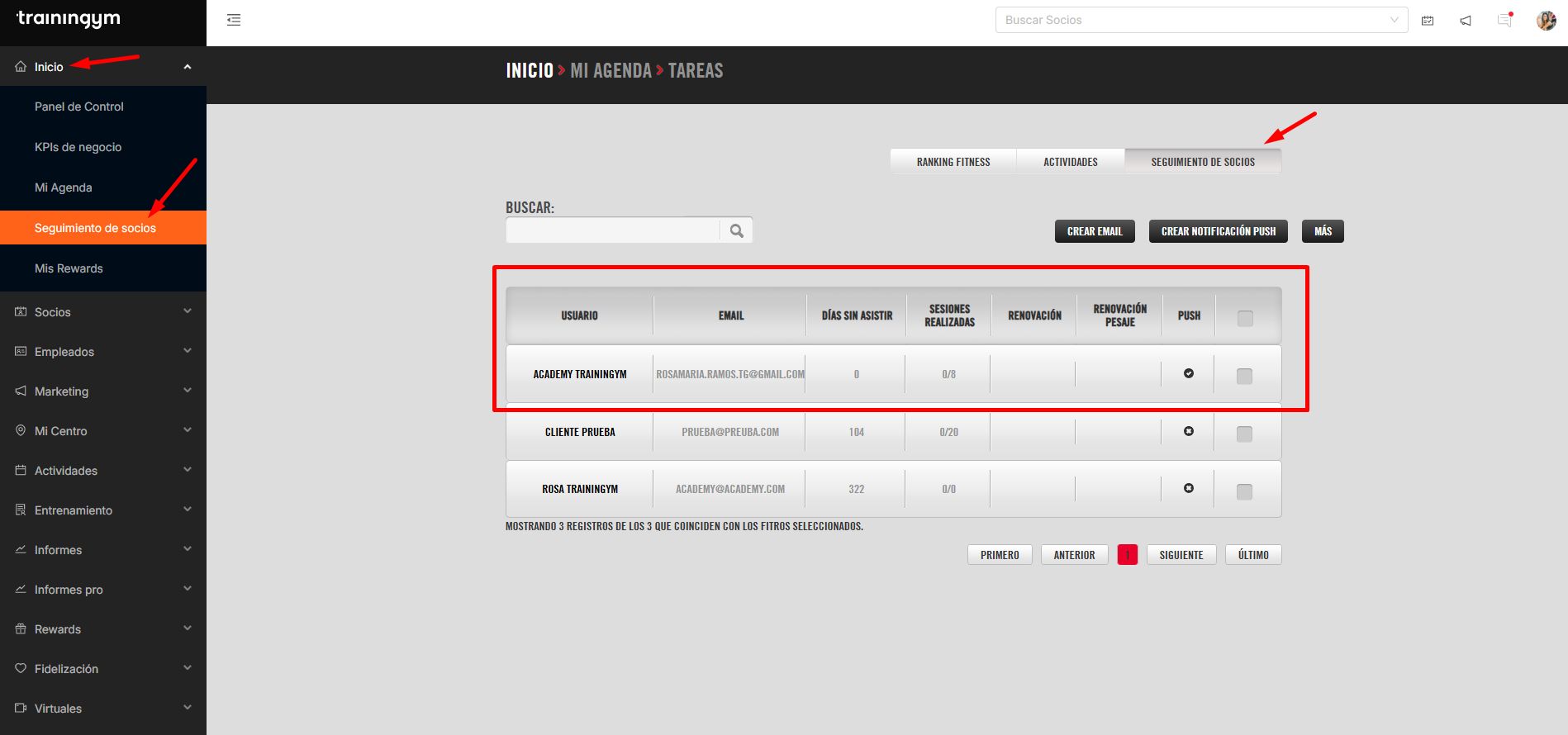 Las principal implicación que tiene la etiqueta responsable es que ese empleado tendrá asignado el socio en el informe de Tareas Entrenadores, ya que tanto los entrenadores asignados como el responsable tendrán al socio en su listado de seguimiento de socios.