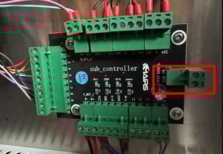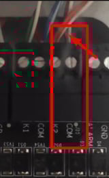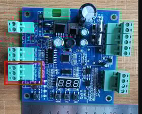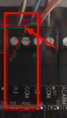 4. Conectaremos los dos cables de los pulsadores en K1 y COM de la placa del torno para hacer una entrada.