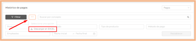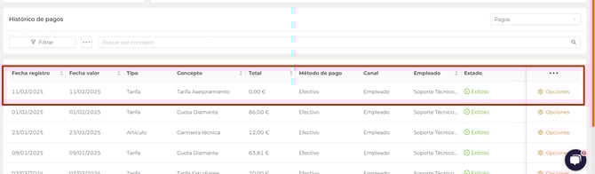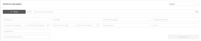 - En la parte inferior del panel, por defecto se te mostrará el Histórico de pagos.