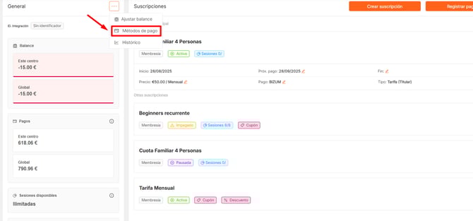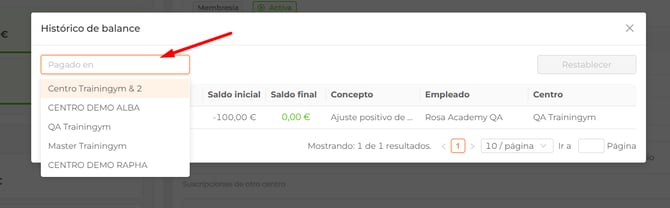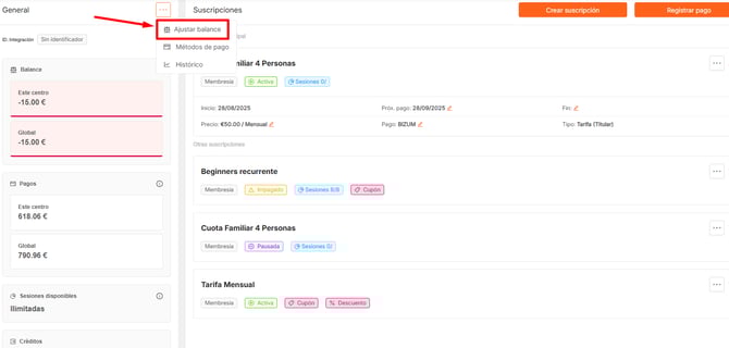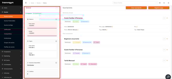 ℹ️ Si el socio es multicentro, te aparecerá tanto el balance asociado al centro en el que estés consultando como al global incluyendo el resto de centros.