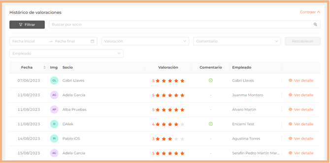 - Por comentario (Si el cliente ha escrito algún comentario en la valoración)