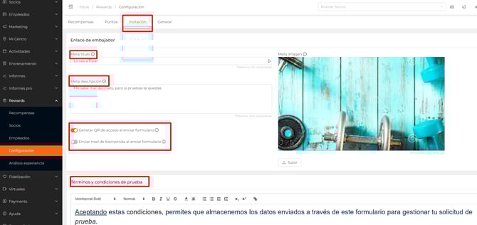 - Redacta los términos y condiciones que los socios deben aceptar al realizar la prueba.