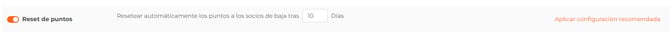 Permite resetear o restablecer automaticamente los puntos de los socios de baja cada ciertos días.