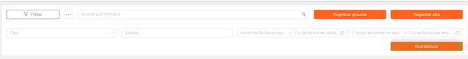 En la pantalla listado de "Pruebas y altas" podrás registrar altas tras completar el formulario con los siguientes datos: