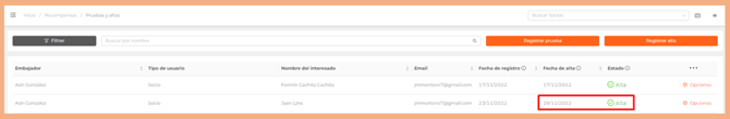 El estado de la invitación pasará a 🏆 Alta en el listado.